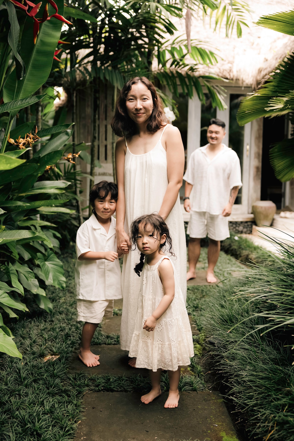 バリ島でプロによる温かく率直な家族ポートレート撮影。 少人数のご家族や大人数のご家族、お祝い事などに最適です。リラックスした快適な環境で自然な表情を捉えます。