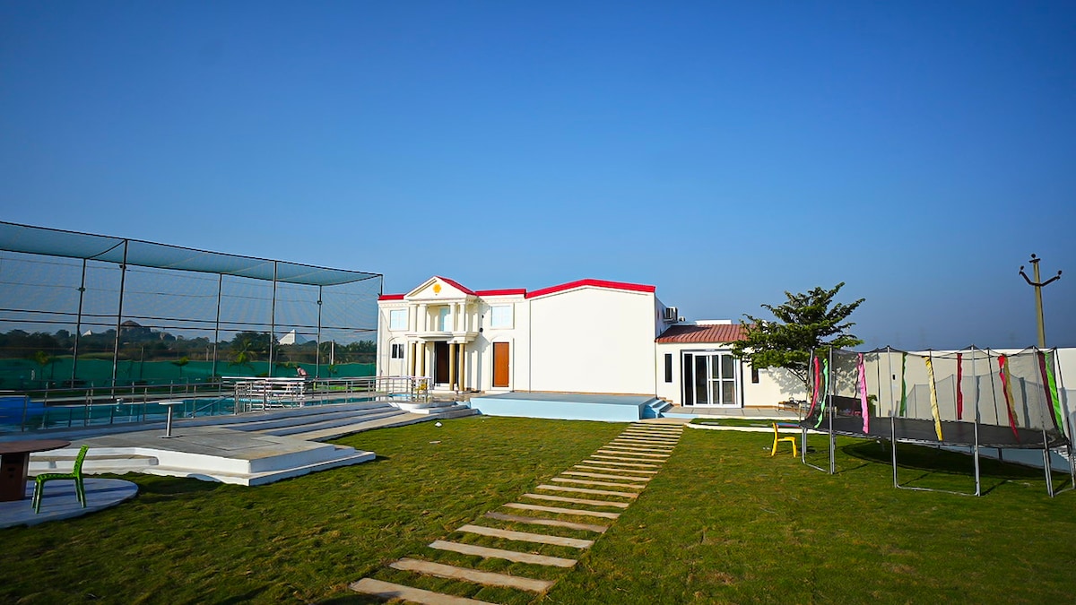 広々としたエレガントなデザインのデュプレックスファームハウスヴィラは、素朴な魅力とモダンな洗練性が美しく融合しています。家具が完備された4つの寝室には専用のバスルームが付いており、きらめくスイミングプール、緑豊かな芝生、子供用プレイエリア、大人用のボックスクリケットなど、究極の快適さとリラックスを提供します。 ご注意: ファームハウス内での飲酒は固くお断りします。