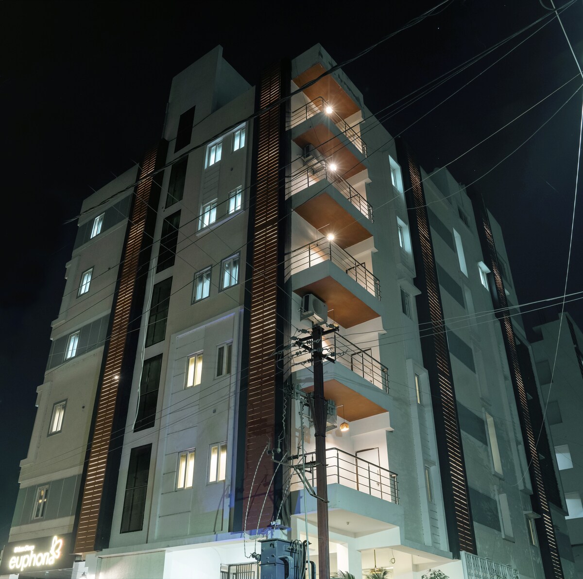 2ベッドルーム、ダイニング、リビング、キッチン。 Nirvana Home Staysは、Kondapur、Hitech City、Yashoda/AIG Hospitals、TCS/DLF/Gachibowli、Metro、Sarath City ( AMB )、Inorbit Mall、IKEA、Shilparamam、QuakePub & Botanical Gardensなど、ハイデラバードの重要なビジネス、医療、ショッピングの目的地から5 ~ 20分以内です。 +炊飯器・ティーメーカー、カトラリー、調理器、ガスコンロ、タワ、フライパン +冷蔵庫、洗濯機、衣類乾燥ハンガー、お湯、浄水器 + Wi - Fi、エアコン2台、テレビ、ソファ、2 W & 4 W駐車場、リフト。