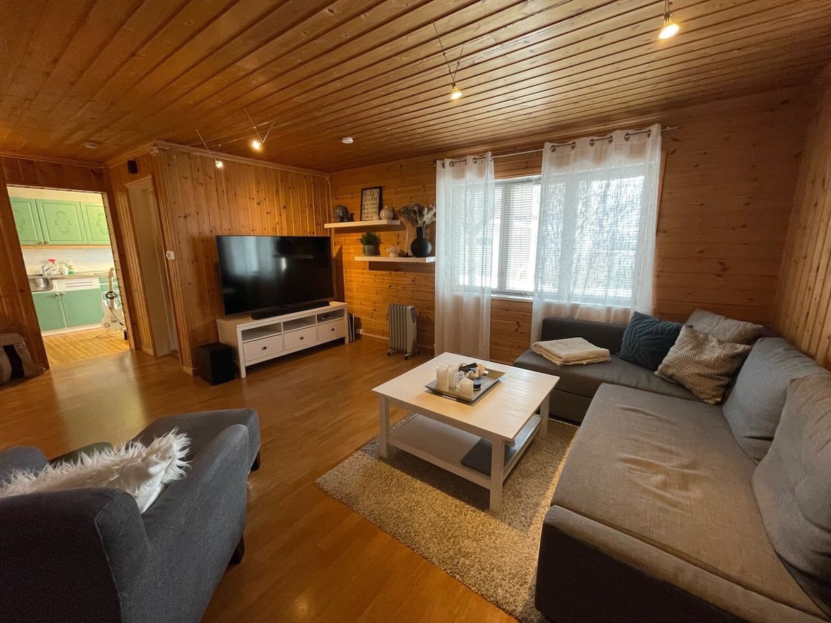 温かくて平和で、プレミアムスタンダード、スマートに装飾され、設備の整ったアパートです。 市内中心部から2 kmの中心部に位置し、ケーブルカーと北極大聖堂のすぐそばです。 無料駐車場。山へのハイキングコースはすぐ外にあります。 トロムソと山々の素晴らしい景色。 空港や市内中心部から直通バスがあり、食料品店、ピザ屋、ショッピングセンター、レストランまで800メートルです。 コーヒー、紅茶、塩、コショウ、油をご用意しております。 洗濯機へのアクセスは手配によります。