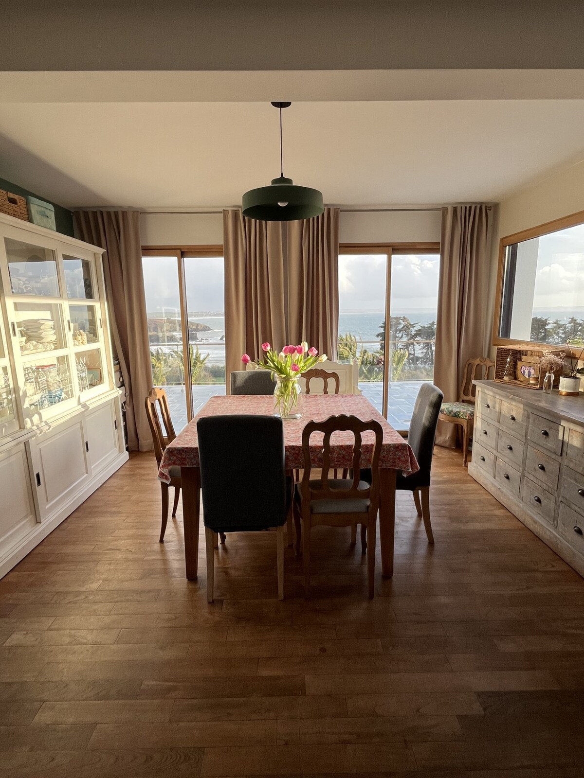 ビーチから300m、中心街とショップ街から3分の場所にある、パノラマの海を望む12名様用の素晴らしい家をご覧ください。🌊🏖️ 理想的な立地にあり、静かでありながら近くにも色んなものがあります。風にさらされず、人目につかない庭は、リラックスして日光浴をするのに最適です。 この家には、外に面したオープンプランのキッチンを備えた広いリビングルームがあります。 専用駐車場と電気暖房が含まれています 🛏️ ベッドメイキング 🚿 タオルは用意されています