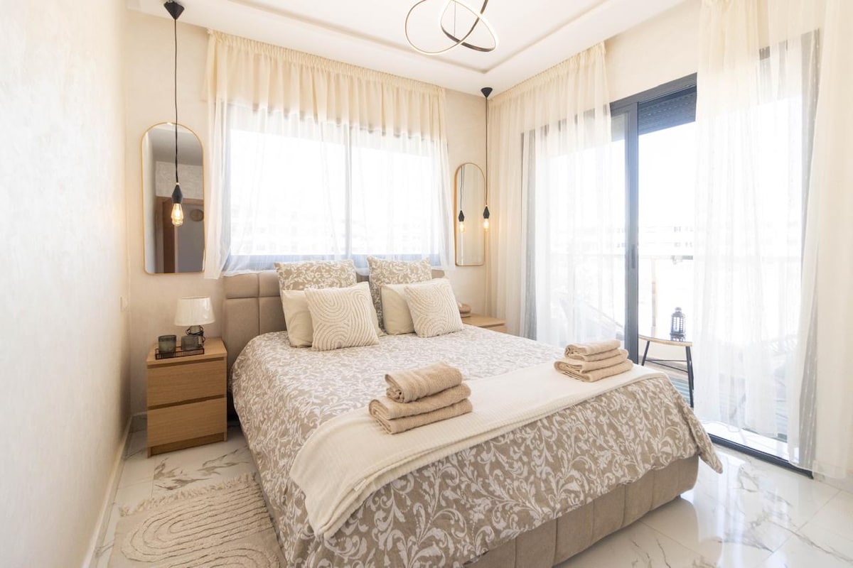 ラバトの中心部に位置する新しくて豪華でリラックスできる2ベッドルームの海岸沿いのアパートで、快適さと静けさを重視する旅行者のために、センスと細部へのこだわりを持って装飾されており、素晴らしい海の眺めが楽しめます。 都市のほとんどのアトラクション、レストラン、ショップまで徒歩圏内です。 設備の整ったアパート、メインベッドルームにエアコン、高速WI - FI、Netflix、コーヒー、そして文字通りラバトで最高の夕焼けビュー 今すぐご予約ください。我が家のような心地よさをお届けするために、すべての条件を設定しました!