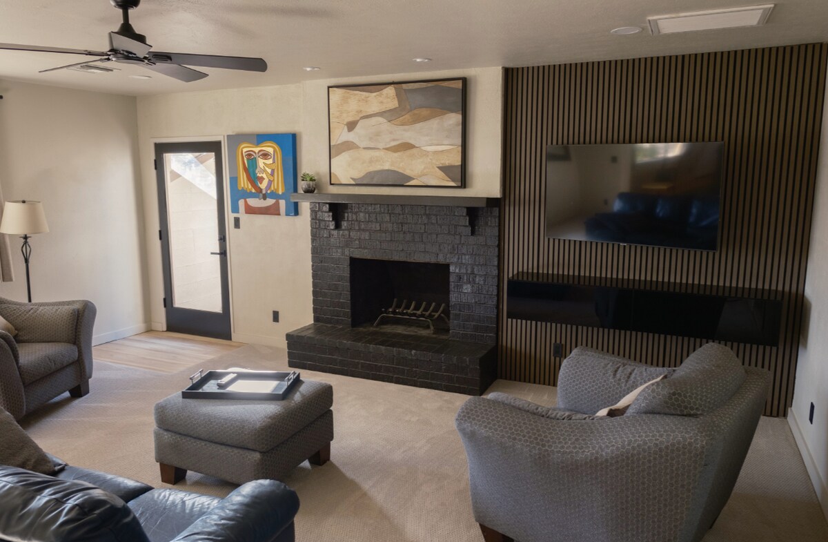 La Vieve Tempe Retreatは、アリゾナ州立大学とミル・アベニューからわずか数分の場所にある、温水プール、ビリヤードゲームルーム、約2,500平方フィートの広々とした4ベッドルームの隠れ家です。屋内外を問わず、スタイリッシュな生活空間を提供します。クォーツ製のアイランドキッチンを備えたモダンなキッチン、暖炉とスマートテレビを備えた開放感のあるリビングルーム、ファイヤーピットラウンジのある門付きの中庭、そして人工芝の庭、屋根付きパティオダイニングスペース、深いプールを備えた、テンペでのリラックスした休暇に最適な裏庭のオアシスをお楽しみください。