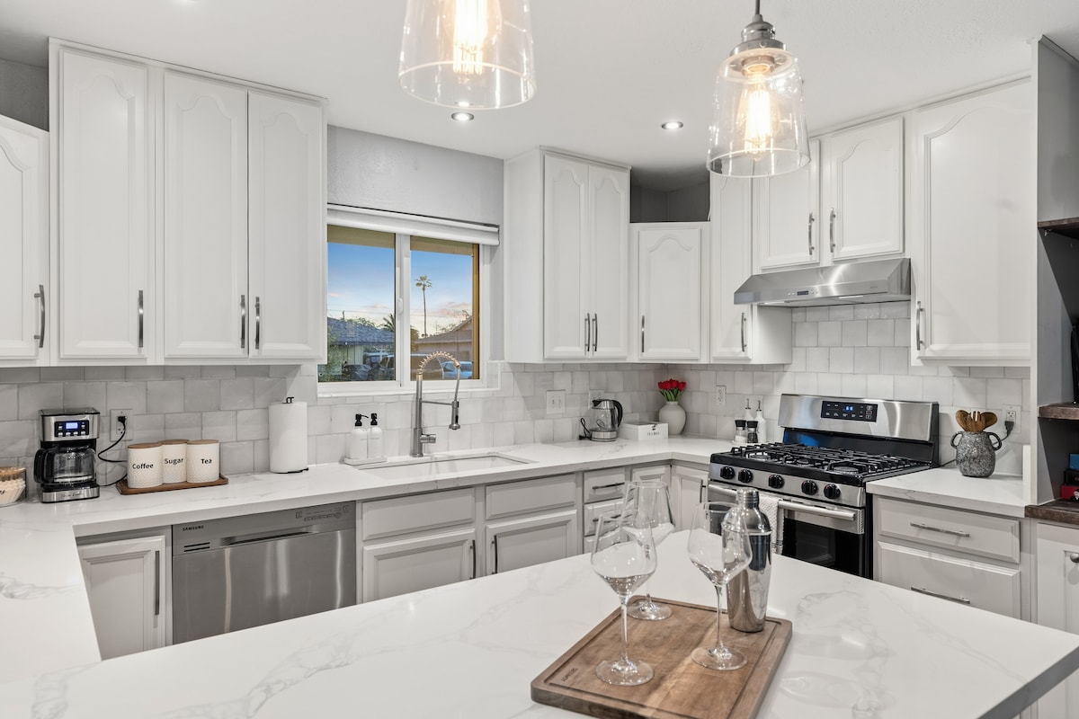 Beautiful and comfortable! Conveniently located a close 3 blocks from Downtown Tempe and Mill Ave! This beautifully renovated 3-bedroom home features a king bed, Queen, Double and Twin, as well as a pull out couch. Awesome large quartz island kitchen, coffee bar, and private gated yard. Great soaking tub, work remotely with high-speed Wi-Fi and a desk setup, or unwind with games and Smart TVs. Close to ASU, Tempe Town Lake. Come enjoy all Tempe has to offer! License #: STR-000985