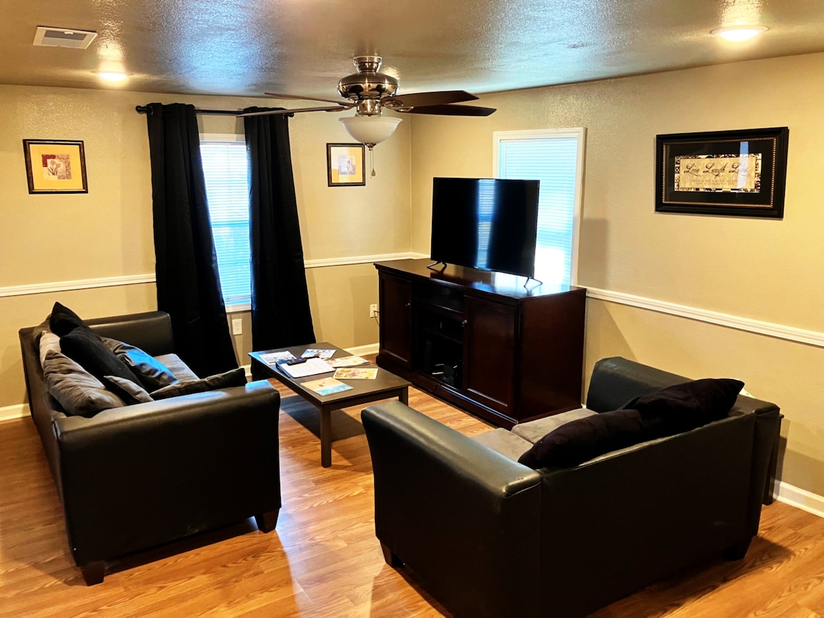 Built in January 2020 Many fine guests have enjoyed it since then - you will too. Just 10 minutes from VA Hospital or Baylor Scott & White Medical Center! Inside are all the amenities for a wonderful stay. Need fast WiFi? It's here. Bring the family for a getaway or settle in for a relaxing place to stay while working in the area. Kitchen is ready for a quick snack, or cook a full meal, & there's plenty of space for everyone to have a little "me-time" as well! 4th bedrm has TV & sofabed.