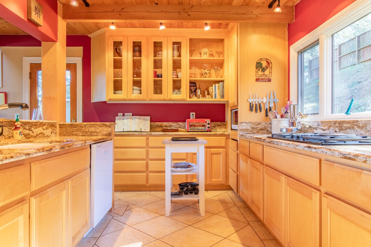 1泊からの宿泊受け入れ可能! ゴールデンゲートブリッジとミュアウッズに近い、魅惑的なミルバレーにある400平方フィートの広いデッキ付きのアパートメントです。タムバレーにあり、設備が整っていて素晴らしい景色が楽しめます。 フランス窓のある寝室(キング)、引き出し式ソファがあるリビングルーム、屋根付きデッキ、調理エリア(注を参照)が含まれています。 到着後は図書館から良い本を持ってくつろぎ、息をのむような野生的な近隣の丘陵地帯を見下ろすデッキでリラックスしてください。:)