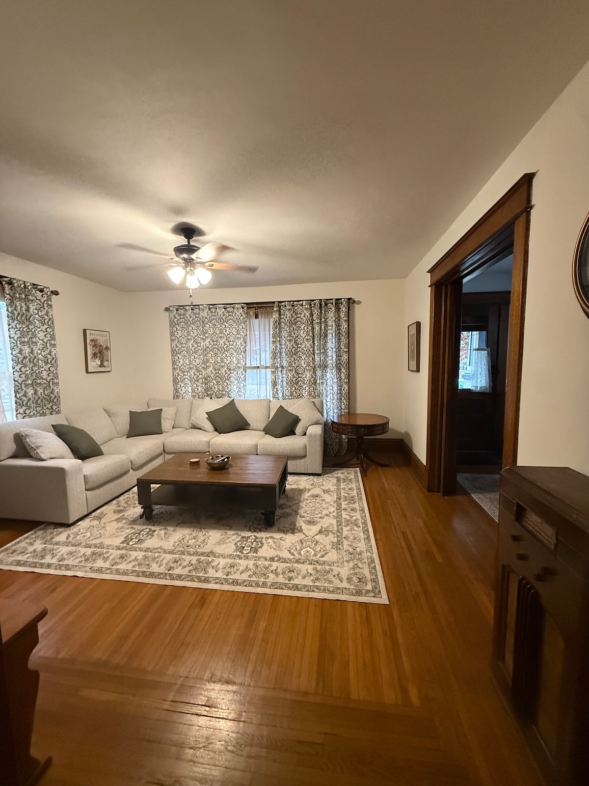 This charming property in the Farrington Grove Historical District offers 4 bedrooms, including 3 queen bedrooms and 1 with two twin beds. With 3 full baths/one full bath on main floor, a large dining, and a well-equipped kitchen, it provides all the comforts of home. No bedroom on main floor. WiFi, and a 55" TV with Google TV , A/C, and a washer & dryer. Large parking area on premises. Conveniently located near ISU and Terre Haute Casino. Self check-in with smart lock code