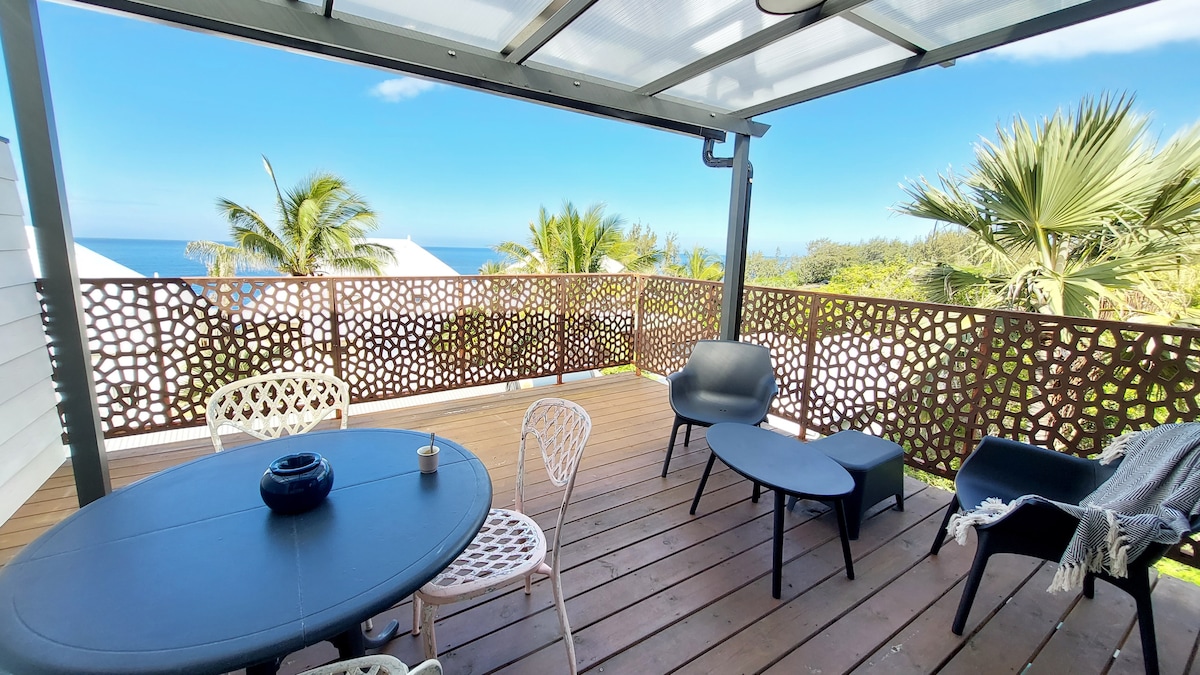 Appartement de standing de 50m2 au RDC bord du lagon de St Pierre. De sa terrasse de 30m2 dominant la mer vous pourrez admirer les Kite surfeurs, les baleines en hiver, les couchers de soleil ou simplement vous reposer. Vue imprenable sur la mer à 180°. Appartement calme, entièrement équipé et décoré avec goût. Wifi gratuit Parking Privatif. Magnifiques couchers de soleil Possibilité de louer au même moment un autre appartement dans la même résidence pour les amis ou les familles nombreuses