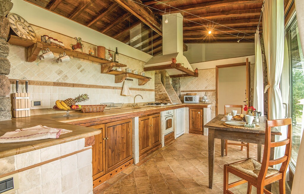 Located between the villages Viceno and Benano with incredible views of Orvieto and surrounded by olive trees. Casa Isla is a refurbished 70sqm 2 bedroom cottage next to the main house, completely self-contained with its own private garden and BBQ area. There is a double bedroom and a second with twin-beds, both with air-con. The lounge/kitchen comes with fridge, gas hob, oven, and dishwasher, a sofa bed, and a smart TV for movie nights. Relax in our salt-water/mineral pool.