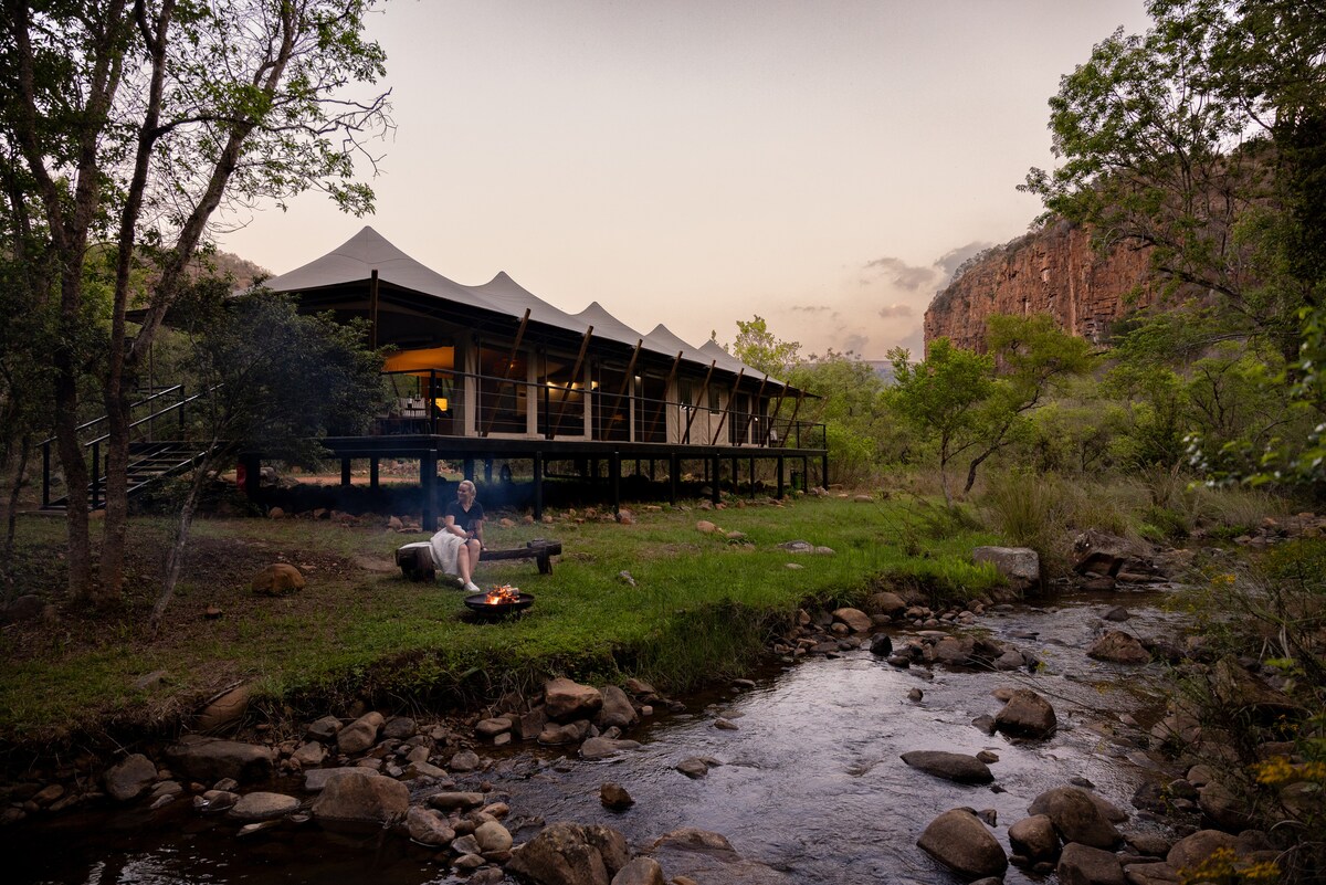 Situated at a unique position along the stream with a stunning view of the awe-inspiring cliffs. The luxurious self-catering tent is designed to provide stylish living with modern amenities and comforts inside nature. The deck tents each sleep two adult persons, with a spacious lounge, dining and kitchen area, a bedroom and open plan bathroom with bath, basin, shower and enclosed toilet. A camping cot or camping bed can additionally be provided in the tents for children.