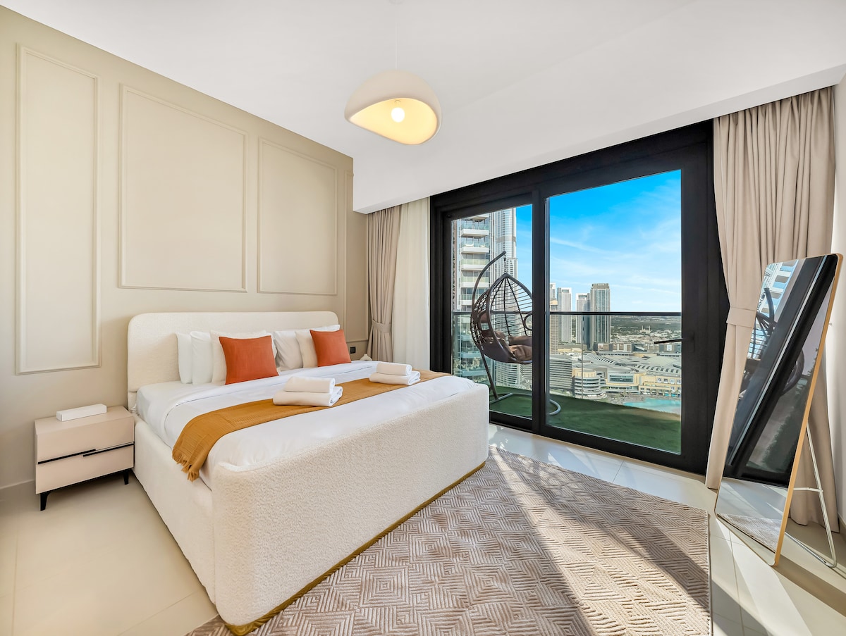 ドバイのダウンタウンにあるスタイリッシュな1ベッドルームのアパートで、ブルジュ・ハリファの景色を眺めながら目を覚ましましょう。ドバイ・モールへは屋内から直接アクセスできます。 専用バルコニー、設備の整ったキッチン、高速Wi-Fi、プール、ジム、無料駐車場を備えています。快適さと機能性を重視して設計されており、カップル、一人旅、小さなファミリーに最適です。 迅速な対応ができるスーパーホストがプロとしてホスティングしています。