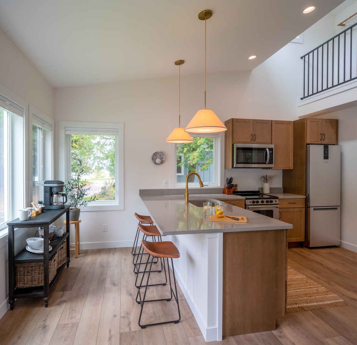 This cozy, one bedroom cottage with modern farmhouse design sits on a nicely wooded and private lot just 1/4 mile west of Glen Arbor. Convenient walking or biking access to all of town's shops and restaurants as well as the beach and Heritage Bike Trail. In the heart of the Sleeping Bear Dunes National Lakeshore, this is the perfect starting off spot for you to enjoy all the beauty Leelanau County has to offer.