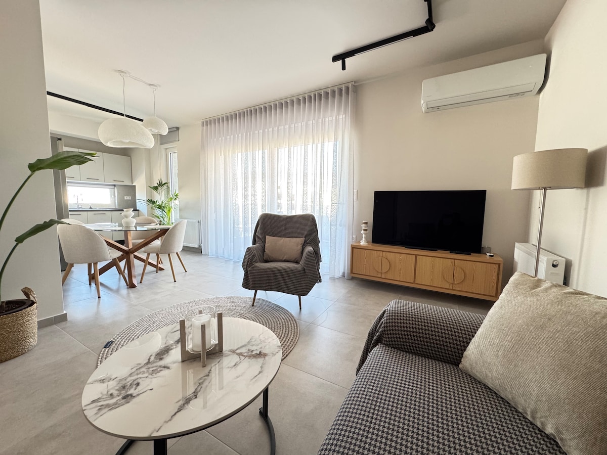 4名様用のアパートは、ダブルベッド1台とシングルベッド2台を備えた2つの独立した寝室と、洗濯機を含む設備の整ったキッチンで構成されています。 各アパートには専用バルコニー、エアコン、スマートテレビがあります。 Wi-Fi、貸金庫、安全な専用駐車場。 島を探索するのに最適なロケーションです。ダジョンは、パパディアマンティス通りのメインハブまでのんびり徒歩10分の場所にあります。