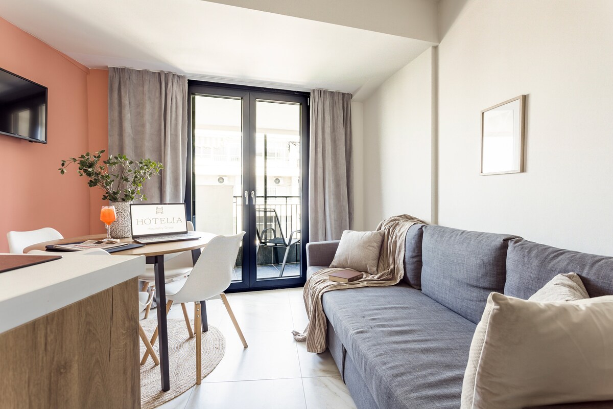 コンパクトなサイズでありながら個性豊かなこのスタイリッシュなミニスタジオは、快適さとインスピレーションを求めるカップルや出張者に最適な隠れ家です。ゆっくりとした朝や静かな夜を楽しめる家具付きの専用バルコニーからは、夜に美しく輝くユネスコ世界遺産の記念碑、テッサロニキの壮大な西ビザンティウムの城壁を眺めることができます。室内には、ダブルベッド、設備の整ったキッチン、エスプレッソマシン、スマートテレビ、超高速1000 Mbpsのインターネットが備わっています。