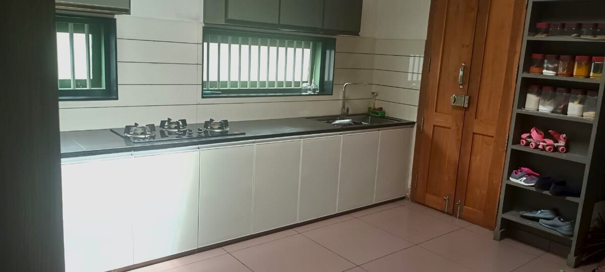 Sneha Apartment is a bright, comfortable 1BHK just minutes from the Guruvayur Temple. The flat has AC, fast Wi-Fi, a neat bedroom, a cosy living area, a functional kitchen, and secure parking inside the compound. It’s calm, clean, and easy to settle into, ideal for temple visits, short family stays, or work trips. A simple, convenient place to enjoy your time in Guruvayur. Ideal for 3 adults 1 child or 2 adults 2 children. 4 adults can also stay with 2 extra mattresses provided.