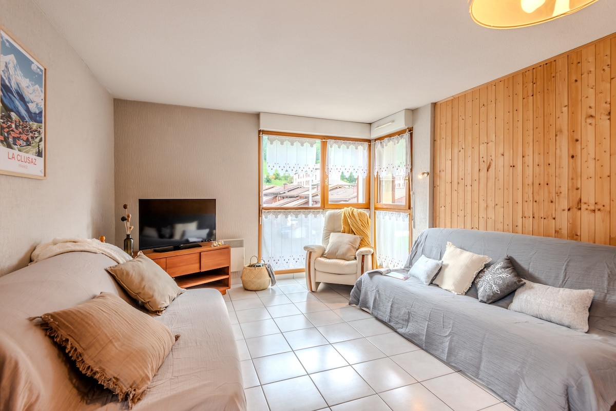 2021年末から2022年初にかけて全面改装されたワンルームアパートで、居心地の良い雰囲気です。 アラビス山脈とクレ・デュ・メルルのスキー場の素晴らしい景色を眺めることができます。静かでありながら商店街に近い村のエリア。 南向きのバルコニーから美しい景色を眺めることができます。この20平方メートルのワンルームアパートは3名様がご宿泊いただけます。 設備が整っていて機能的なワンルームです。