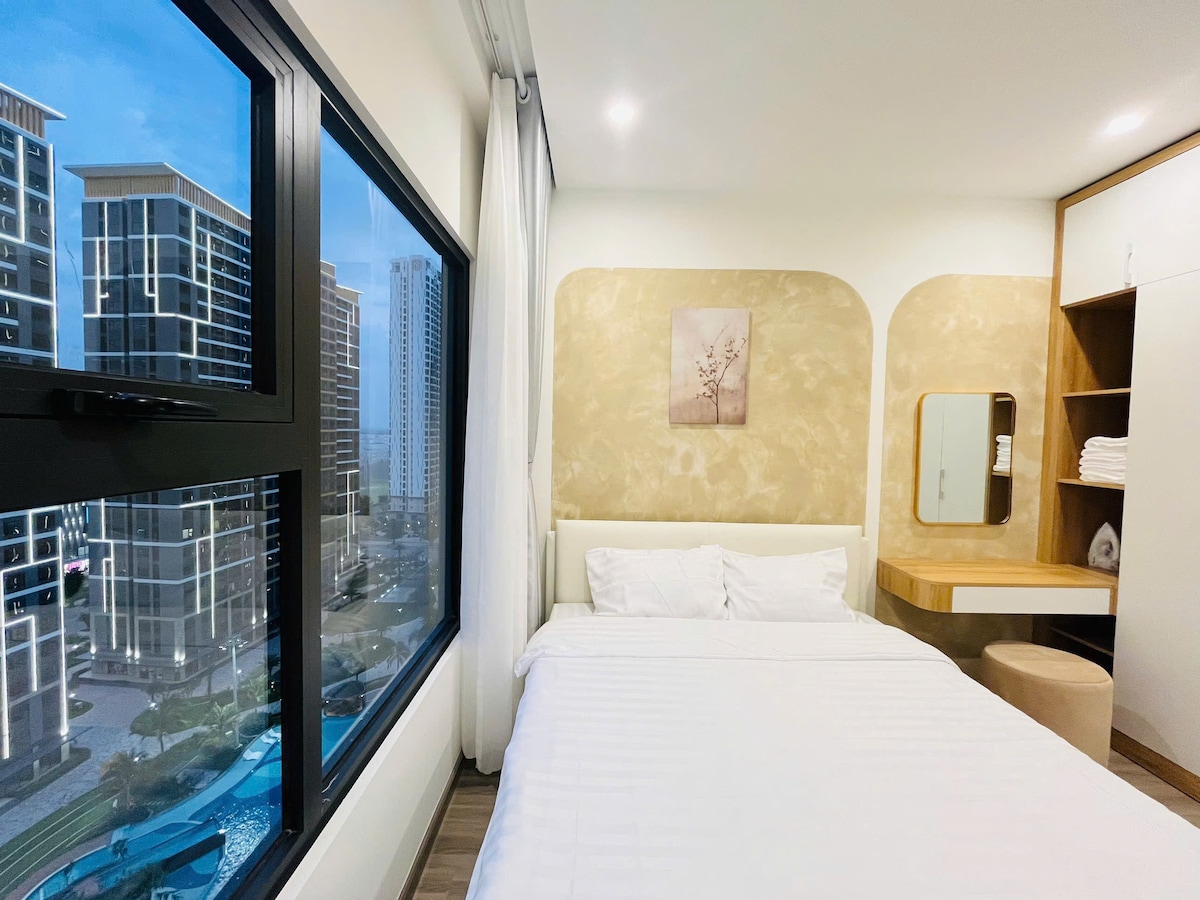 -広々とした風通しの良い1ベッドルームのアパートで、モダンにデザインされた高級家具が備わっています。 -キッチンには調理器具が完備されており、お気に入りの料理を自由に準備できます。 -清潔なバスルームには専用の洗濯機があり、タオル、シャンプー、シャワージェルをご用意しています。 -アパートは市の中心部、イオンモール、ソンベゴルフコース、VSIP 1工業団地のすぐそばにあり、仕事やエンターテイメントの場所に移動するのに便利です。