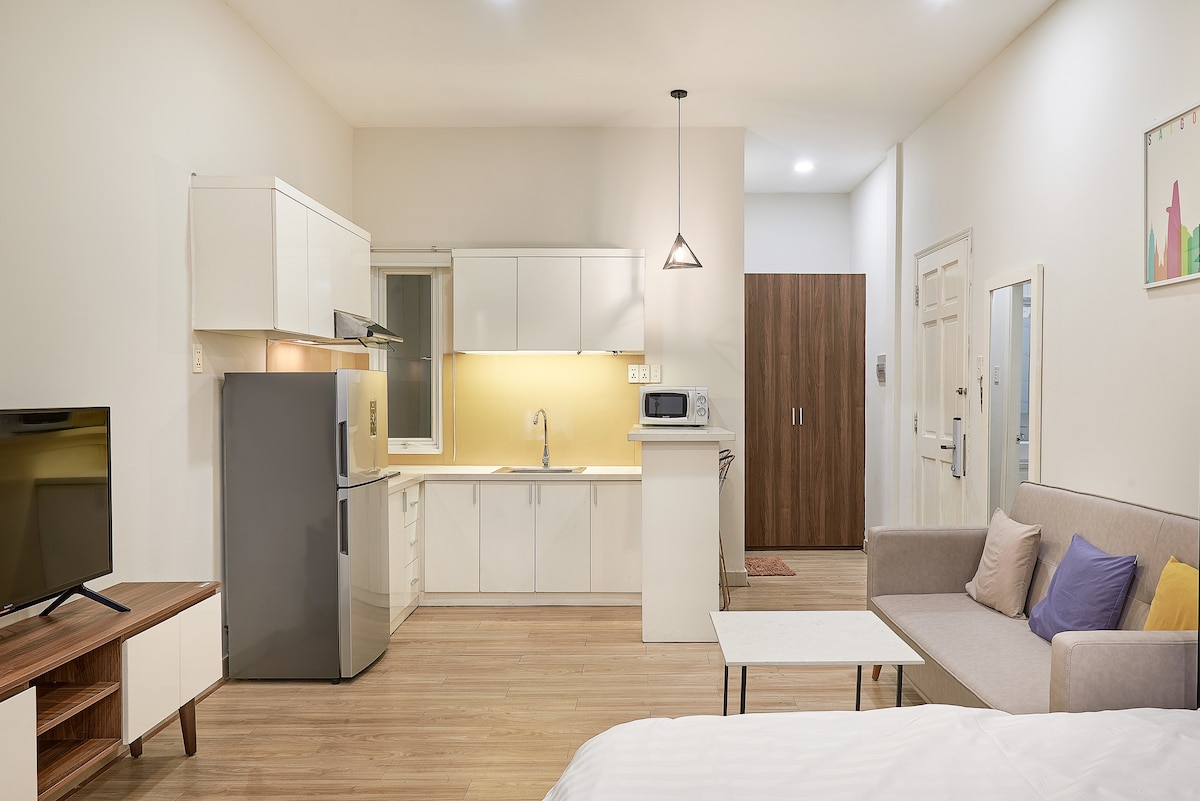 ホーチミン市の3区に位置し、旅行者に人気の宿泊先です。 - ベンタン市場、ブイヴィエンウォーキングストリート、1区、4区まで10分。 -建物の下にはコンビニ、フードコート、カフェがあります。 -素敵なジム、プール、バーベキューエリア、子供の遊び場。 - 空港送迎、インターネットSIMカード、バイクレンタルなど、ご旅行のためのフルサービスを提供しています。 私たちは、ゲストに居住する場所とたくさんの素晴らしい体験をしていただきたいと考えています。