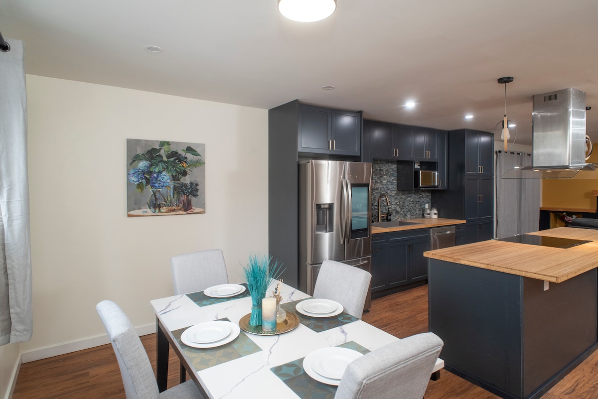 フルキッチン、広いリビングスペース、モダンなバスルーム、すべてのドアにプライバシーロックが付いた3つのベッドルーム、Wi-Fi、駐車場を備えた地下スイート全体。この新しく改装されたユニットには、キーパッドロック付きの専用玄関と、机と人間工学に基づいた椅子を備えた2つのワークステーションがあります。 5泊以上のご滞在の場合はランドリーをご利用いただけます エアマットレスは追加料金30ドルでご利用いただけます(リクエストに応じて)。 15泊以上のご宿泊の場合、隔週の清掃が必須です。