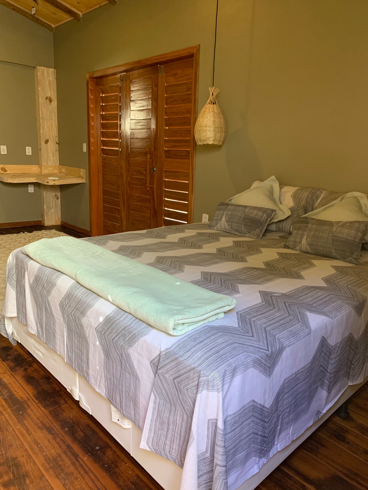 Chalezinhoスイート—居心地がよく独立した空間 プライバシー、快適さ、利便性を求めるゲストに最適です。 スイートの特徴 • エアコン • Wi-Fi • ハンモック、テーブル、椅子2脚を備えた専用ポーチ • コンパクトキッチン(ミニバー、電子レンジ、小型電気オーブン、コーヒーメーカー、ミキサー、クレイウォーターフィルター) • ご自身で朝食や軽食を作るのに最適 共有スペース • ハンモック付き屋外パティオ • 屋外シャワー