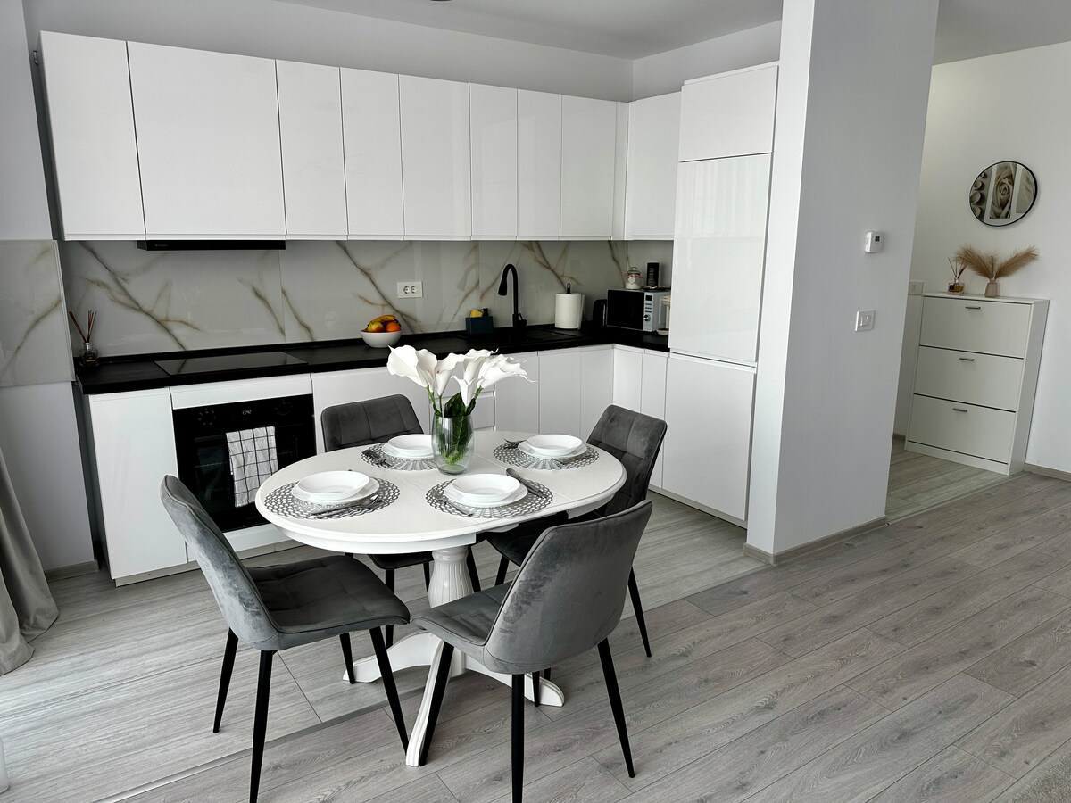 アパートは中心部にあり、Piata Uniriiから1.3kmの新しい住宅団地にあります。 徒歩10分で簡単に行けます。お茶、コーヒー、またはアペロールをたくさんのテラスに行くのに最適な場所です。 市内で最も人気のあるショッピングスポットの1つであるIulius Mallは1.2km先にあり、徒歩すぐで行くことができます。 地下ガレージの駐車場は、滞在を十分に楽しむことができるように、地下ガレージの駐車場が含まれています。