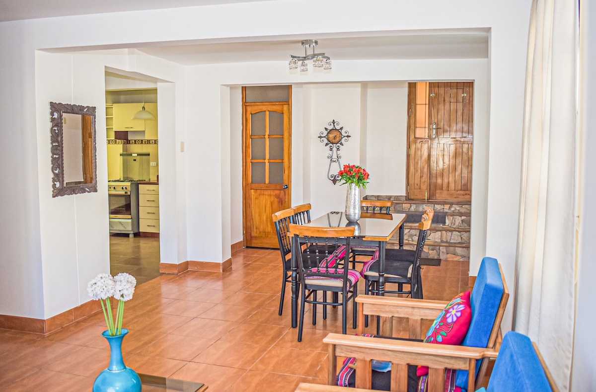 ゲストの皆様 ヴァレンティーノの家へようこそ。ウアラスのアルマス広場から徒歩2分です。近くには素晴らしいレストラン、散歩道、ショッピングセンター、ジムがあります。交通費はかかりません。 アパートからは山々とキューバ公園の素晴らしい景色が見渡せます。この場所は明るく、木々や山々を眺めながらリラックスしたり朝食をとるのに最適な場所です。広々としたリビング、設備の整ったキッチン、パティオ、お湯、55インチテレビ、高速インターネットを備えています。