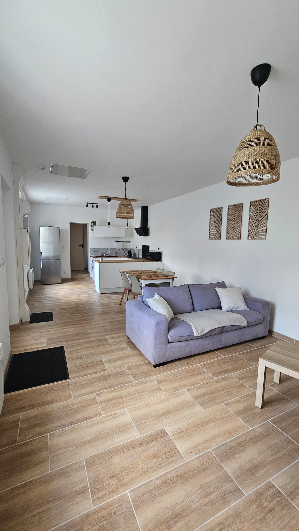 Je vous propose ce logement entièrement neuf, situé à côté de notre maison. Il est composé d'une chambre séparée et d'une pièce à vivre avec kitchenette, salle de bain wc séparés. Le calme est l'atout de cet appartement, puisque la maison est au bout d'une impasse : aucun passage de voiture ! Vous bénéficierez d'une vue agréable sur un cadre verdoyant et paisible. Possibilité de garer des vélos, ainsi qu'une voiture dans la cour. En 10mn à pied vous accéderez au centre ville de Peronne.