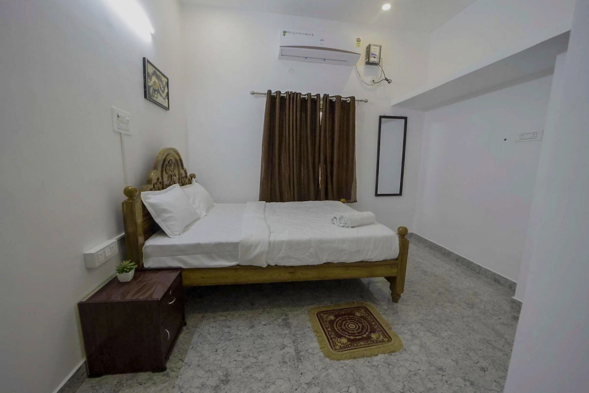 ラマナ・アシュラムからわずか2.5 kmの、専用玄関が🌿ある平穏な1階のアパート。 ❄️ エアコン付きの寝室、Wi-Fi、温水シャワー、洗濯機 設備の🍳整ったキッチン(基本的な備品と調理器具) 🚗 自動車の送迎手配、路上駐車可能 アーユルヴェーダクリニックに🛖隣接しており、ご要望に応じて本格的な治療を受けられます 快適さ、落ち着き、地元のガイダンスを求めるスピリチュアルな訪問者に🙏最適 🍀 安全で緑豊かな環境