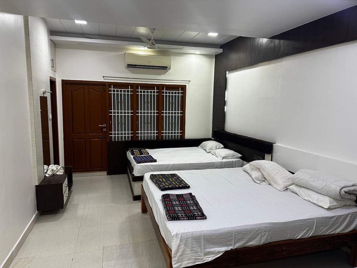 プレミアムルームは225平方フィートの広々としたお部屋で、寝室にはバスルームが付いており、クイーンベッド2台があり、さらに2台のエキストラベッドを快適に置くことができます。すべての部屋にスプリットエアコンがあり、ティルヴァンナマライの山の景色が見える大きな窓がすべての部屋に固定されています。 ケーブルチャンネル付き43インチスマートLEDテレビ、また、ゲストのサブスクリプションでOTTを利用できます。停電時に役立つインバーター設備付きの無料Wi-Fi。