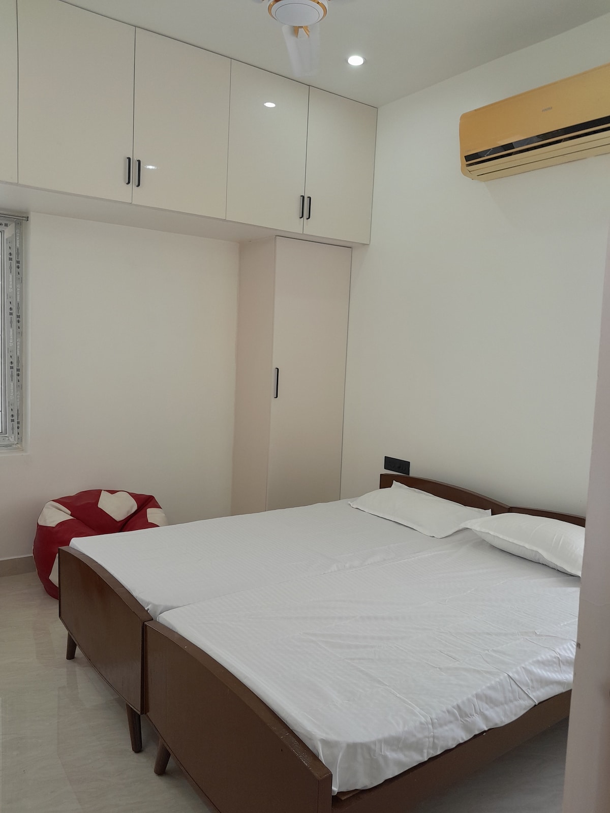 スリ・クリシュナ・パレス🌸–神性と快適さが出会い、楽しさが湧き出る場所😎。寺院からわずか3 km (7 ~10分)の場所にある、アルナチャラ山🏔️が見える広々とした2BHKに滞在しましょう🚗。両方の寝室にはエアコンと専用バスルーム🚿が備わっているので、朝の待ち時間はありません🙌。居心地の良いリビング、深夜のマギー🍜用キッチン、無料の温水と冷水💧、寺院の鐘が鳴るより速いWi-Fi📶、駐車場🚘、CCTV🛡️、スマートロック🔑。UPSバックアップ⚡(エアコンを除く)により、スムーズにご利用いただけます。