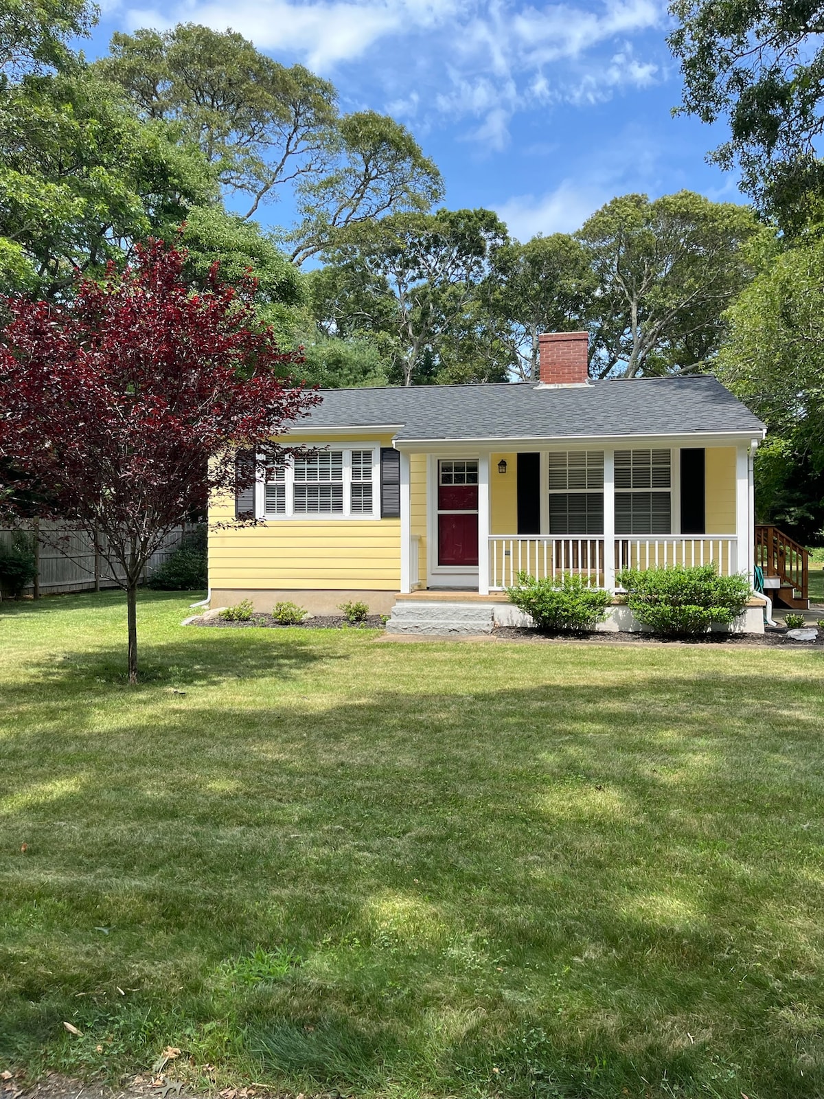 静かでプライベートな森林地帯にあるモダンなコテージ。 手つかずの自然で、明るく快適に家具が取り付けられています。 オープンリビングエリア、堅木フロア、アーチ型天井、屋内/屋外暖炉、設備の整ったキッチン、洗濯機/乾燥機、ケーブル/インターネット/無制限の国内通話が可能な電話、Netflixとその他のインターネットストリーミングサービスを備えたスマートテレビ。 ビーチやトレイルまで徒歩または自転車で行け、繁華街のお店やレストランまで車で5分です。 宿泊施設はウェストチョップウッズに隣接し、素敵で静かな散歩道があります。