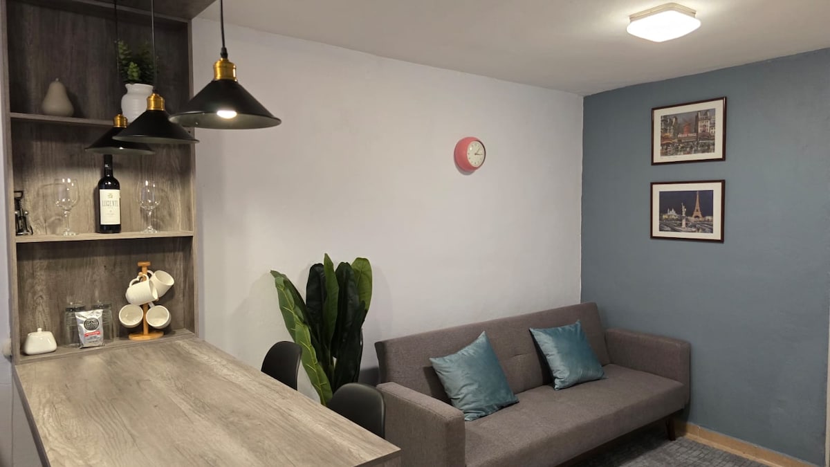 Disfruta de la calidez de este alojamiento tranquilo y céntrico.Contamos con una recamara con cama matrimonial, aire acondicionado y TV, sala-comedor con cocina equipada (refrigerador y estufa) y estacionamiento para un auto mediano. Nos ubicamos a 5 minutos caminando de los atractivos turísticos del centro. (paseo colón,paseo del Rio,alameda, teleférico) Hospedate en una de las zonas más tranquilas y seguras en Orizaba en donde pasarás una tarde agradable con la hermosa vista al teleférico.