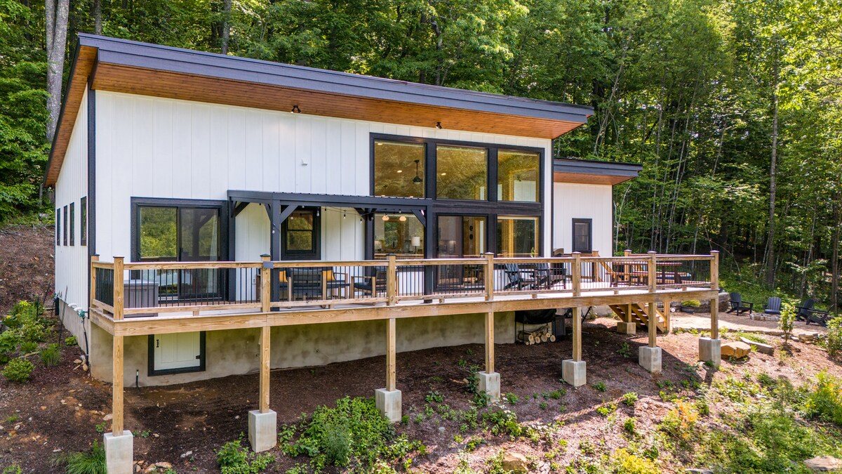 ノースカロライナ州ブローイングロックのクロス・クリーク・ファームズのポプラ小区にあるこの豪華な山の現代的な家で、のんびりとおくつろぎください。 この家は2エーカーの敷地内にあり、プライバシーが十分に確保されています。たくさんの窓があり、日光が差し込み、周囲の森の美しさを楽しむことができます。 この家は、オープンコンセプトで、アーチ型のリビングエリア、広いキッチン、スパのようなバスルームを備えた広々としたベッドルームが特徴です。 ブーンまたはブローイングロックまで車ですぐです。
