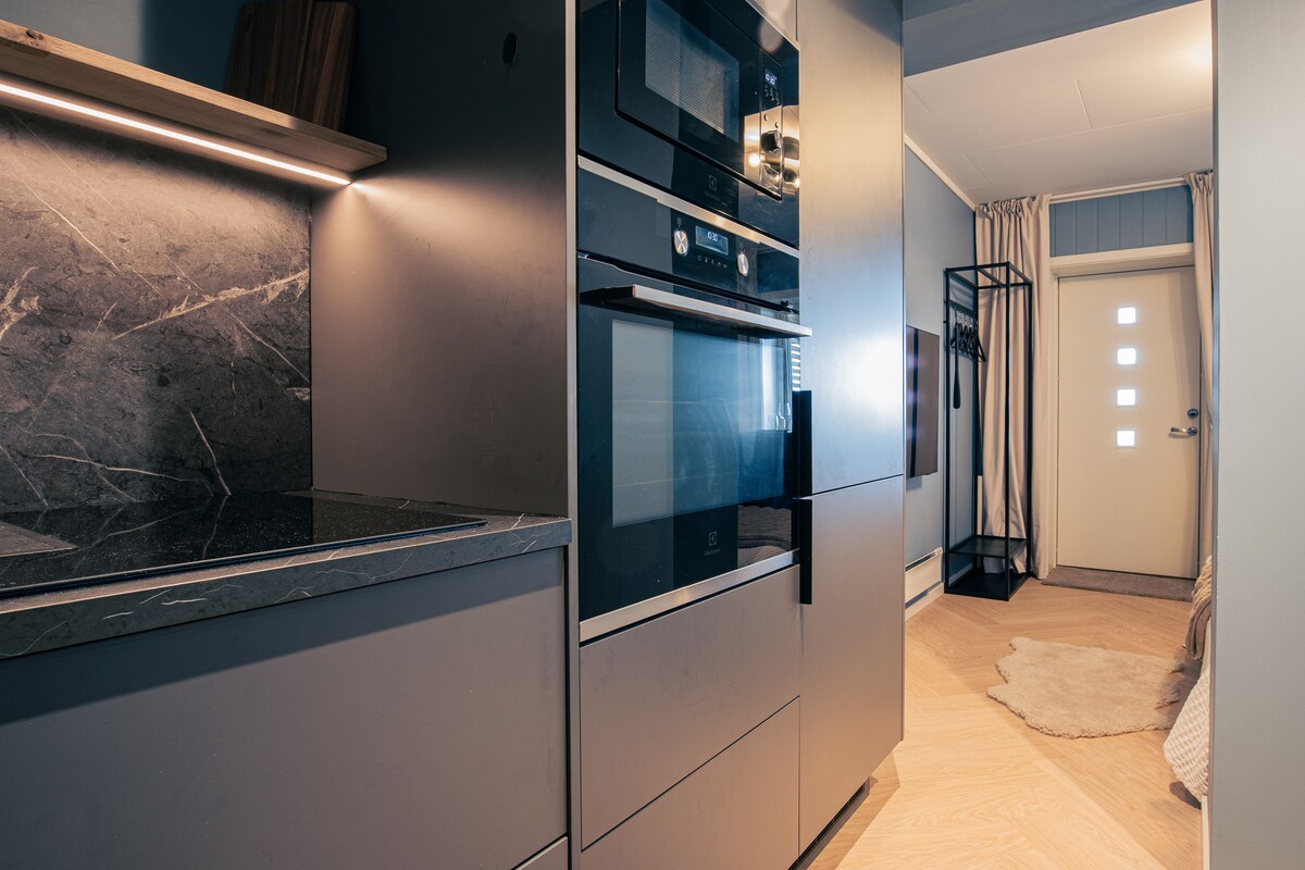 Denne flotte og sentrale leiligheten ligger i 2 etasje og er 43 m2. Leiligheten inneholder gang, soverom, bad og stue med kjøkkenløsning. Det er også en privat balkong. Vervet area is a newly developed district in Tromsø, with restaurants, cafes right by. The city center is only a 5 minutes’ walk from the apartments, same for the Artic Cathedral across the bridge. The apartment building is modern and placed right by the harbor.