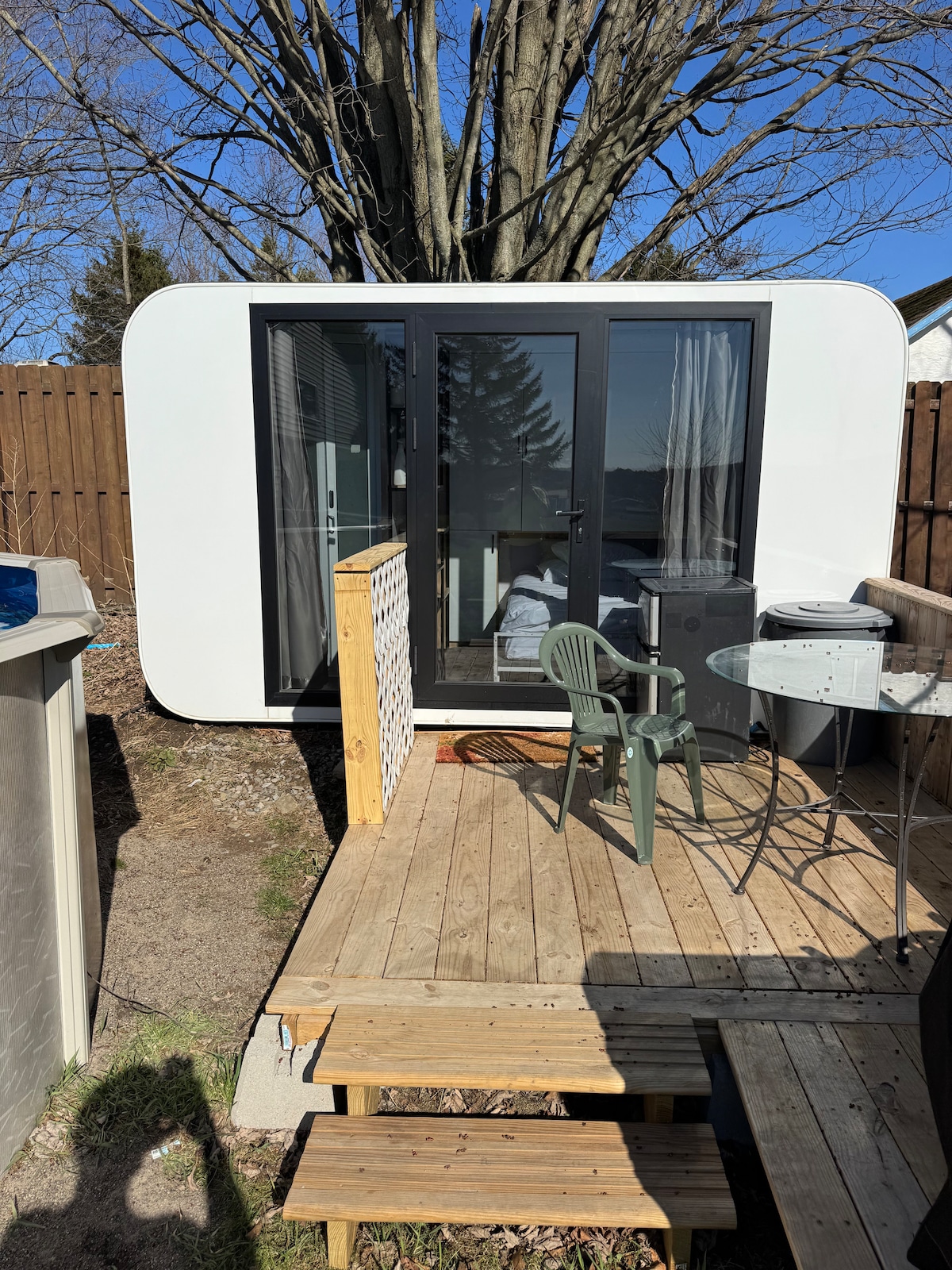 「カップル向けの居心地のよいタイニーハウスで息抜きをしましょう。ジャグジーでくつろぎ、ファイヤーピットのそばで笑いを分かち合い、星空の下で穏やかな夜をお楽しみください。屋外にはプライベートな空間が用意され、屋内にはモダンで快適な設備が整っています。リラックスし、つながりを深め、お互いの時間を楽しむのに最適なロマンチックな隠れ家です。」 追加のお土産を1~2点お持ちいただいても構いません。また、追加のスペースが必要な場合は、隣のテントでお泊まりいただくことも可能です。
