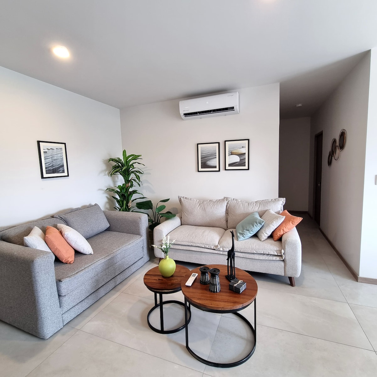 Refurbished apartment, ground floor level. Located a few blocks away from the financial district, Punto Sao Paulo and Midtown (a new luxury mall). Living room and bedrooms equipped with AC units. Departamento recién remodelado en planta baja. Ubicado a unas cuadras del distrito financiero, de Punto Sao Paulo y Midtown (un nuevo centro comercial de lujo). La sala así como las recámaras cuentan con equipo de aire acondicionado de última generación.