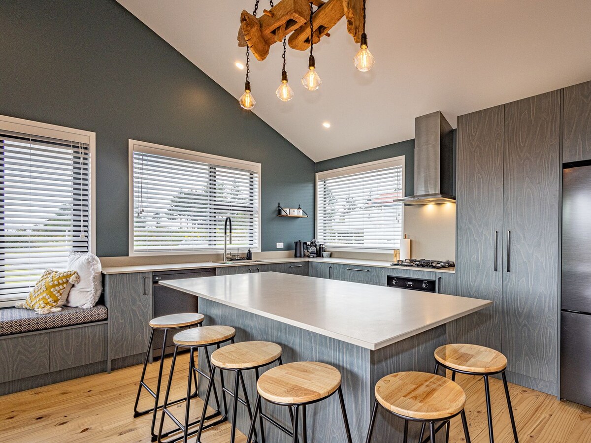 ワイマリノ村(旧ナショナルパークビレッジ)にあるモダンで温かみのある家。2家族連れや大人数のグループ向けに設計されており、ラウンジや寝室の窓からはンガウルホエ山とルアペフ山の素晴らしい景色が見えます。 トンガリロクロッシングに最も近い村で、雪山まで車で15分です。ミニゴルフ、トランピング、遊び場、スーパー、レストランなどのアクティビティの中心地です。 ベッドには高級リネンを使用しています。 モダンな設備の整ったキッチン、バーベキュー、乾燥室で暖かく過ごせるオープンファイヤー。 Wi-Fi完備。