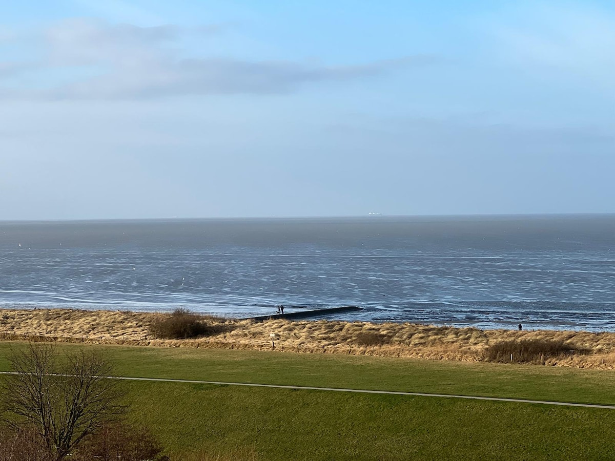リモートワークや快適なカップル休暇に最適です。犬歓迎! ククスハーフェン-ドゥーネンにある静かでモダンな屋根裏のアパートで、海の眺め(または潮の状況によっては素晴らしい浜の眺め)を楽しめます。 高速Wi-Fi(Netflix(スマートテレビ)で素敵な夜を過ごしたい方や、ここから仕事をしたい方に最適)。 ビーチ、浜辺、水辺からわずか150メートルで、すぐ近くには素晴らしいレストラン、パン屋、アイスクリームショップがあります。