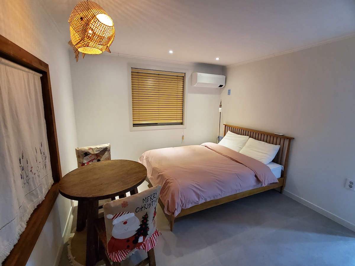 éããªç°èã®æã«æ°ç¯ããã2é建ãŠã®å®¶ã§ãã 1éã«ã¯äž¡èŠªãäœãã§ããã2éã«ã¯è€å±€åã®ç¬èº«è çšã®å®¿æ³æœèšãéå¶ããŠããŸãã å€éšé段ããå®¿æ³æœèšã«åºå ¥ãã§ãããããé察é¢ã§ãã§ãã¯ã€ã³ã§ããããŒããã¥ãŒãšãªã¢ãåºãæ°Žéããã©ã¹ãªã©ãèªç±ã«ãå©çšããã ããŸãã 䞡芪ãåžžé§ããŠããã®ã§ãäžäŸ¿ãªç¹ããªã¯ãšã¹ããªã©ã«ããã«å¯Ÿå¿ã§ããŸãã ç°èã§ãããåšèŸºã®ã¬ã¹ãã©ã³ãã«ãã§ãã³ã³ããã芳å å°ãŸã§ã¯è»ã§20å以å ã«ç§»åã§ããŸããïŒæèæµ·æ°ŽæµŽå Ž15åãã ã«ãæµ·æ°ŽæµŽå Ž6åããããããŒã6åãæèã€ããŒã15åãéªå²³å±±ã±ãŒãã«ã«ãŒ15åã駱山寺10åãªã©ïŒ ããŒããã¥ãŒãéã䜿çšããå Žåã¯ãè¿œå æé30,000ãŠã©ã³ã§ãã çãèªãããŒããéæ¿ãªã©ããã¹ãŠæã£ãŠããã®ã§ãé£ã¹ç©ã ããæåããŠãã ããã ãã©ã¹ã«ãããŒãã«ãçšæãããŠãããç°¡åã«é£äºãããæ¹ã¯ããŒããŒãã°ãªãã«ããå©çšããã ããŸãã 1éã®ã¹ããŒããã¬ãã2éã®ããããŒã ãããžã§ã¯ã¿ãŒã«ã¯ãNetflixãTvingãèªåãã°ã€ã³ãå¯èœã§ãã