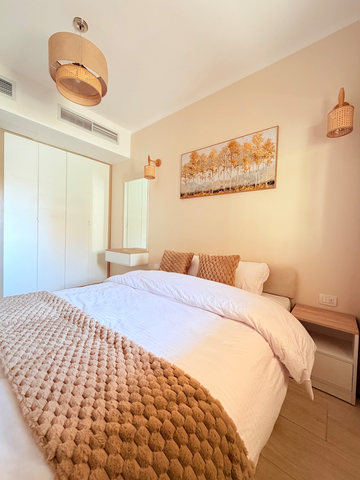 このワンルームの温かみのあるリラックスした雰囲気は、ストレスや不安を軽減することを保証します。 一日の終わりにくつろぎましょう。 照明を暗くし、音楽を聴き、シーツを引き、特別な就寝時間を過ごしましょう。 5階にある、息をのむようなプールビューのモダンな家具付きワンルームアパートです。 アルダウハイツは、観光地の遊歩道に非常に近い、素晴らしい住宅地です。