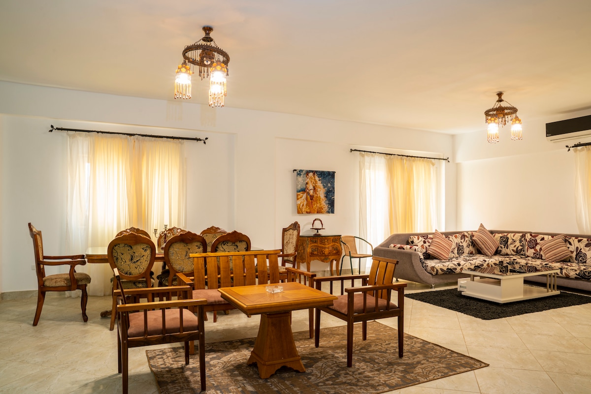 ロイヤルブルーヴィラ、800平方メートルの庭園、専用のプールとジャグジー付き。 空港からの送迎、カイロ、ルクソールへのプライベート旅行など、さまざまなエクスカーションをご用意しております。 イルカと一緒にオレンジ島まで泳ぎませんか? ヴィラには、素晴らしい休暇を過ごすために必要なものがすべて揃っています。 ヴィラには3つのベッドルームがあり、8名様に適しています(追加の二段ベッド) 遊び場、ビリヤード台、卓球台、エアホッケーテーブルがあります