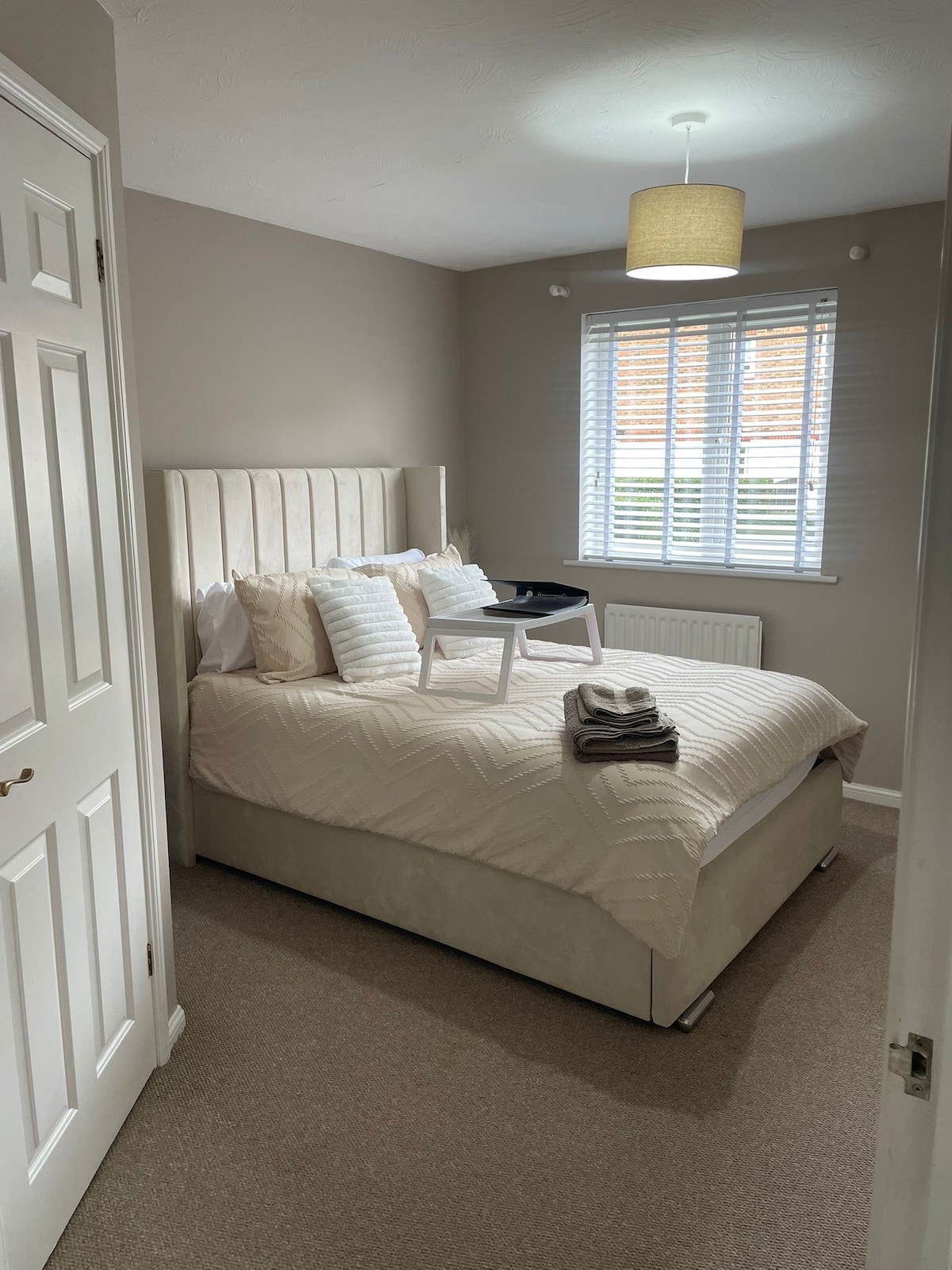 WELCOME to our beautiful home - perfect for both LONG-TERM STAYS and relaxing short getaways. Spacious and stylish 3 bedroom house. Comfortably accommodates up to 6 guests. Upstairs there are 3 bedrooms with the third being accessed through the rear bedroom. Bedroom 1: 2 x single beds or 1 x super king zip & link bed Bedroom 2: 2 x single beds Bedroom 3: 2 x single beds or 1 x king zip & link bed Living room: 1 x leather sofa bed, coffee table and 50" flat-screen TV