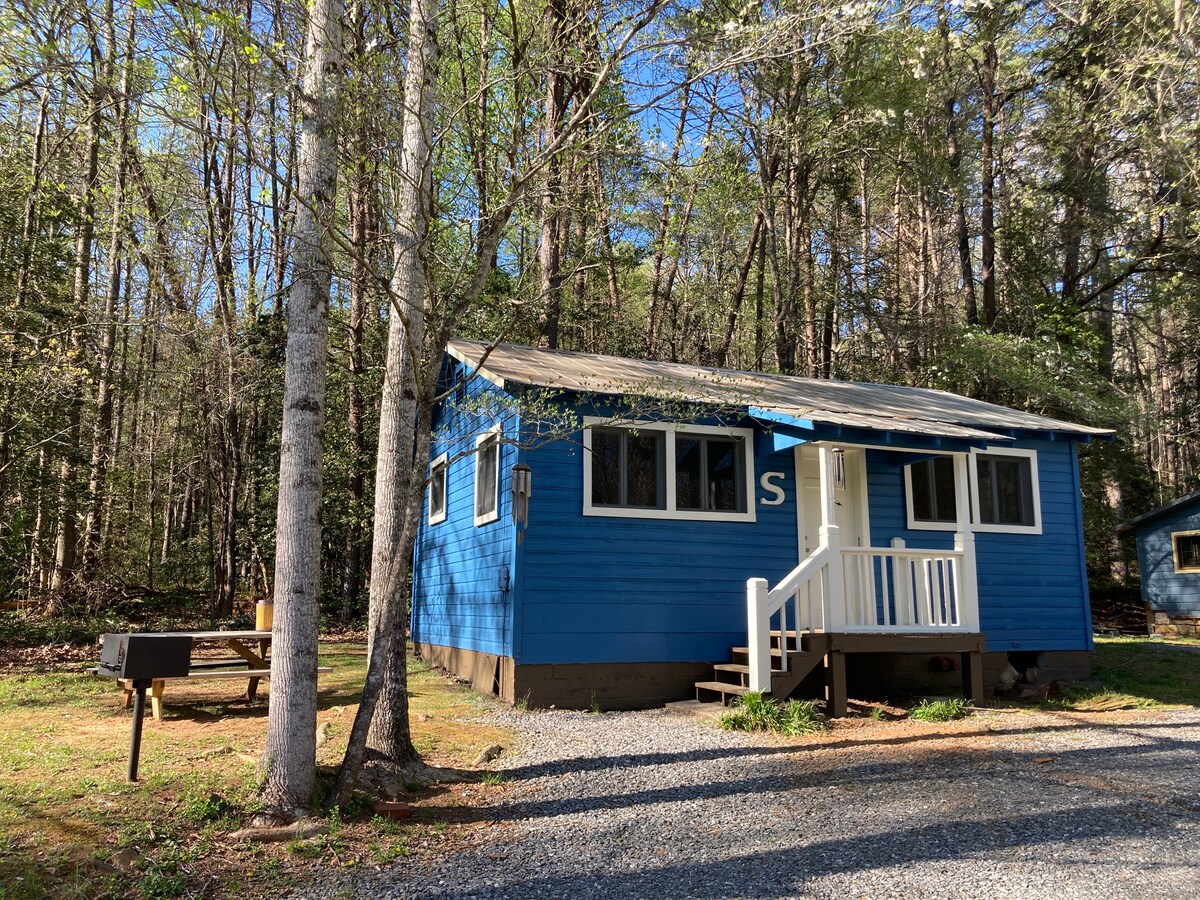 私たちと一緒にグランピングに来てください!この1930年代の歴史的なフィッシュキャンプキャビンは、2ベッドルーム/1バスルームで、バートン湖の近くのブルーカヌーキャンプ場にあります。このキャビンにはクイーンベッド2台、簡易キッチン、リビングエリアがあります。ジョージア州ヘレン、クレイトン、クラークスビルの中心部に位置しています。敷地内にあるレストランやハイキングコースの利便性をお楽しみください。近くには公共のアクセス、ハイキング、ワイナリー、急流下りなどができる湖が3つあります!私のプロフィールの下にあるキャンプ場の利用可能なキャビンをすべてチェックしてください!