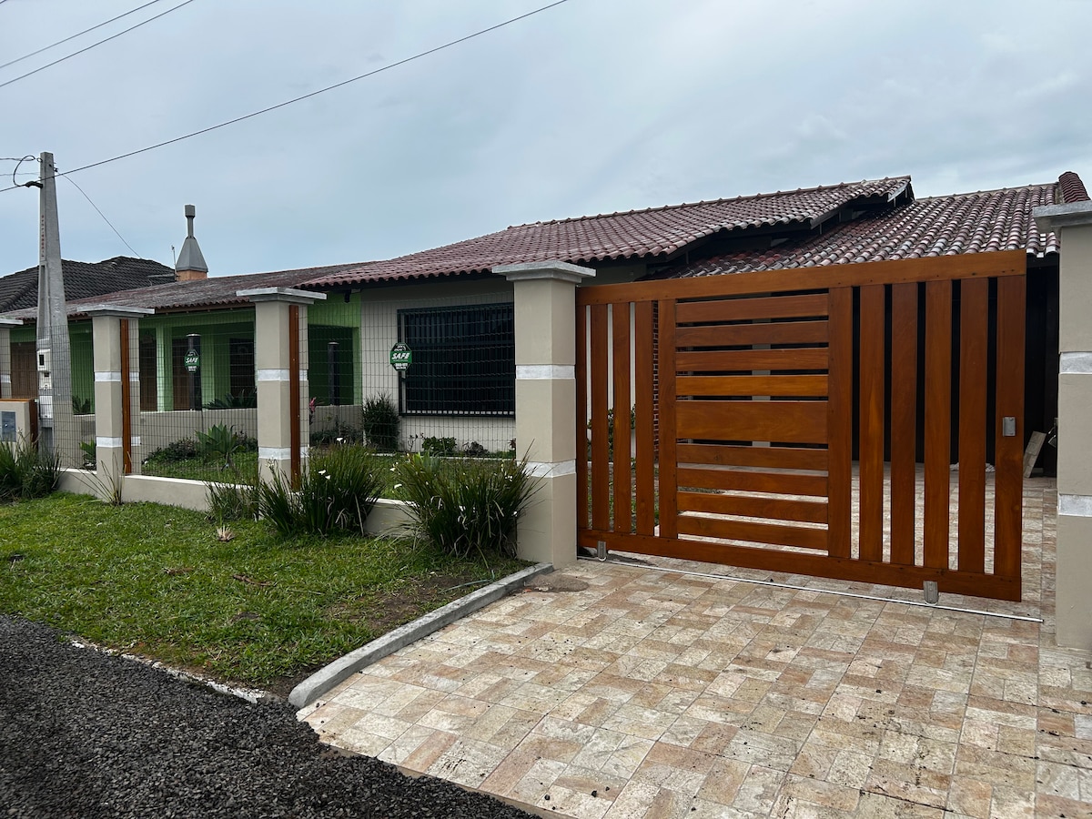 ノヴァ・トラマンダイの家、リビング/キッチン、エアコン付きのダブルベッドルーム1室、追加マットレス、天井ファン付きのダブルベッドルーム1室、バスルーム1室、バーベキューセット、屋根付きガレージ、サービスエリア、ビーチから800m、近くに市場と薬局があります。