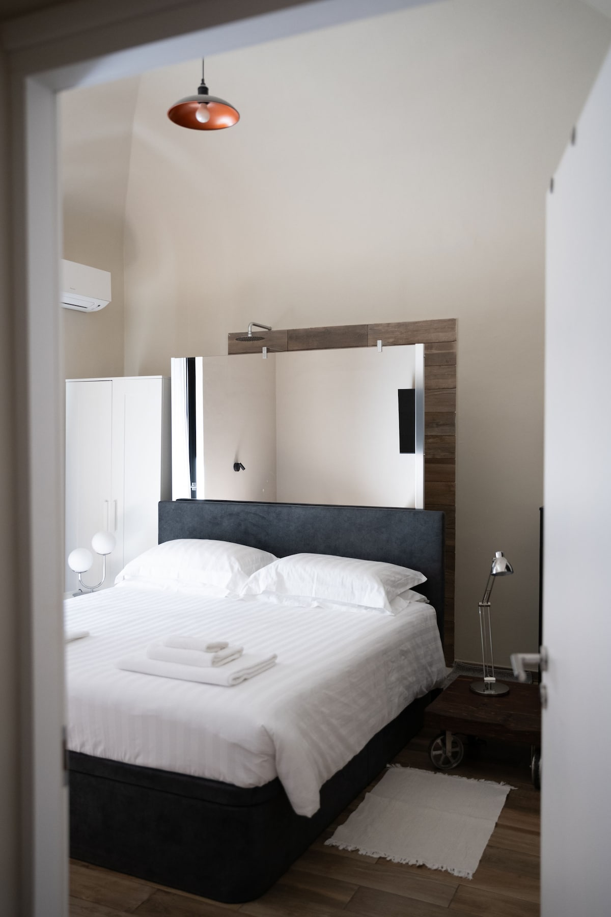 Olivo Homeの構造は、バーリ郊外の新築アパートに、この素晴らしい街に滞在したい方のための環境に優しく快適なスイートを再現するというアイデアから生まれました。このスイートは、デザインと旅行が大好きなカップル、リアとアレッサンドロの願いから生まれました。アパート全体に床暖房・冷房システムが備わっており、ホームオートメーションとWi-Fiを完備しています。また、セルフチェックインが可能です。リラックスしておくつろぎください!