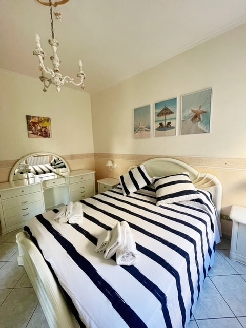 アパートは、クリストファー・コロンブスの海岸通りとビーチから徒歩数分です。 快適で居心地の良いアパートメントには、キッチン、ダイニングルーム、3つのベッドルーム、シャワー付きの2つのバスルーム、屋外での朝食に最適なベランダバルコニー、そして海を望むバルコニーがあります。エレベーターはありませんが、1階にあります。 CISコードPuglia BT11000991000049590 CINコードIT110009C200094908