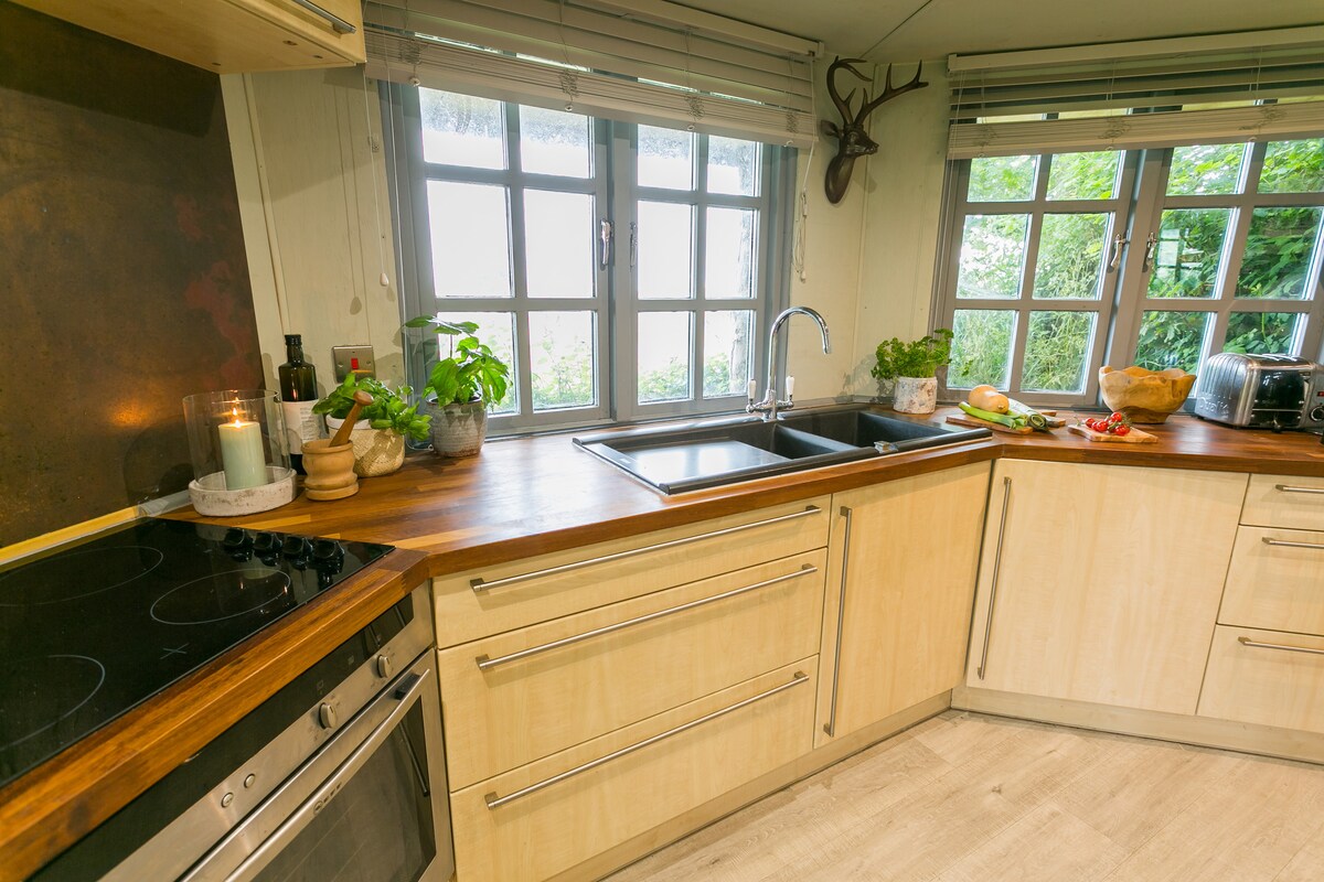 森の中にある美しいモンゴルのユルトです。 バスルームはドアから数フィートのところにある木造キャビンにあり、ゲスト専用です。 景色は息をのむ海岸線を望むことができ、遠くにはスノードニア、手前には農地が見えます。 ユルトには、ミニホブとオーブン、冷蔵庫、トースター、ケトルが備わっています。 コンチネンタルブレックファストをご用意しています。 薪ストーブがあり、一年中いつでも快適に過ごせます。