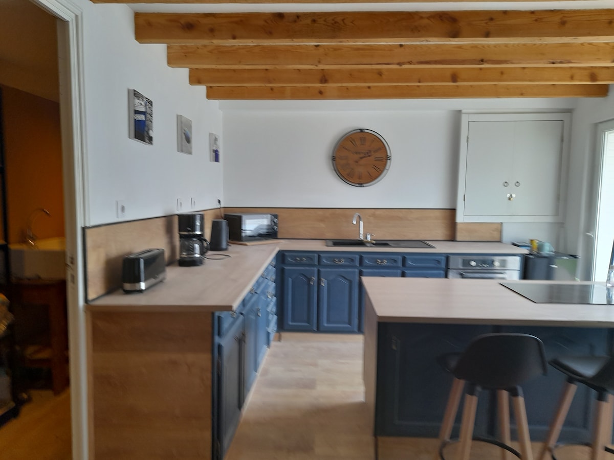 サン・ブリューの歴史地区からわずか10分、ビーチから15分の静かなエリアにある、専用庭園を備えた明るく快適な家です。バーベキュー付きのテラス、設備の整ったキッチン、快適なベッドルーム3室をお楽しみください。家族やお友達とのご旅行に最適です。小さくてお行儀の良い犬は大歓迎です!専用駐車場、ファイバーインターネット、ベビー用品…美しいブルターニュでのんびり滞在するために必要なものがすべて揃っています!