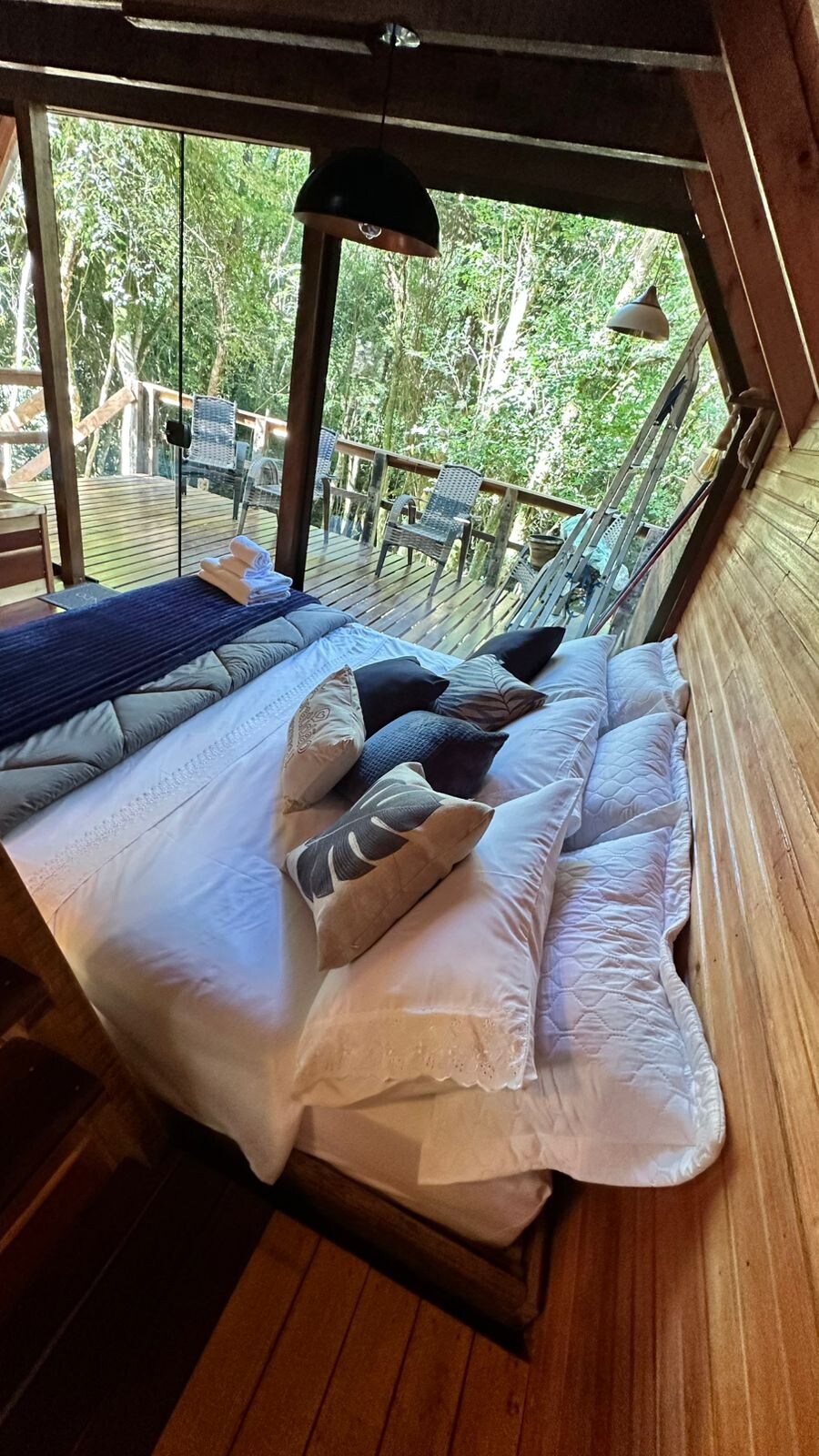 「ラテンアメリカ最大の仏教寺院から100mのセラ・ガウチャにある素朴でモダンなキャビン! 完全なプライバシー、パノラマビューのプライベートデッキ、高速Wi-Fi、エアコン、3.5ヘクタールの保護区域(ユネスコ世界遺産)の自然。清掃料金はかかりません。無料の自転車、無料の警備付き駐車場、時間の自由が含まれています。 平和とつながりのユニークな体験!」 快適さと静けさを備えた魔法のような体験をお楽しみください 😃🌴 プロモーション価格。