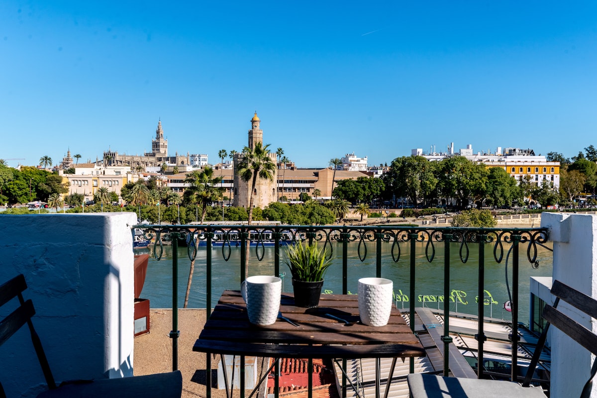 トリアナの中心部にある、完全に改装された19世紀の家の魅力的なデュプレックスペントハウス。 35m2のプライベートテラスと、夕暮れ時にヒラルダとグアダルキビール川が金色に染まるのを見ることができる特別な展望台から、セビリアの最高の景色をお楽しみください。 アパートはエレベーターのない建物の2階と3階にあります。アクセシビリティの制限事項をご確認ください トリアナ橋から1分、大聖堂から徒歩10分。歴史、美しさ、バー、レストラン、魅力的な場所に囲まれています。